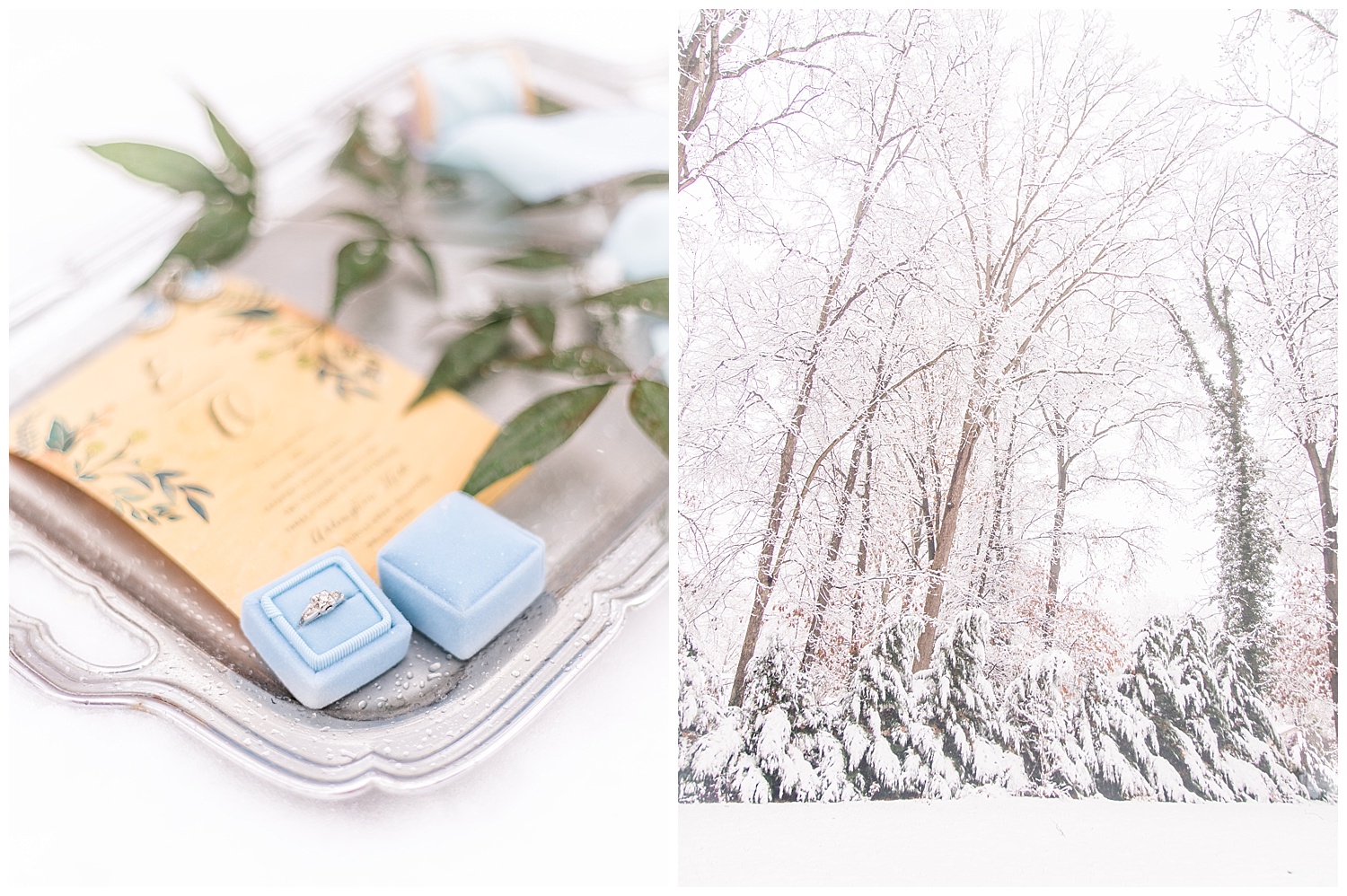 I took some of my favorite silver trays and velvet ring boxes and had the best time styling bridal details in the snow.