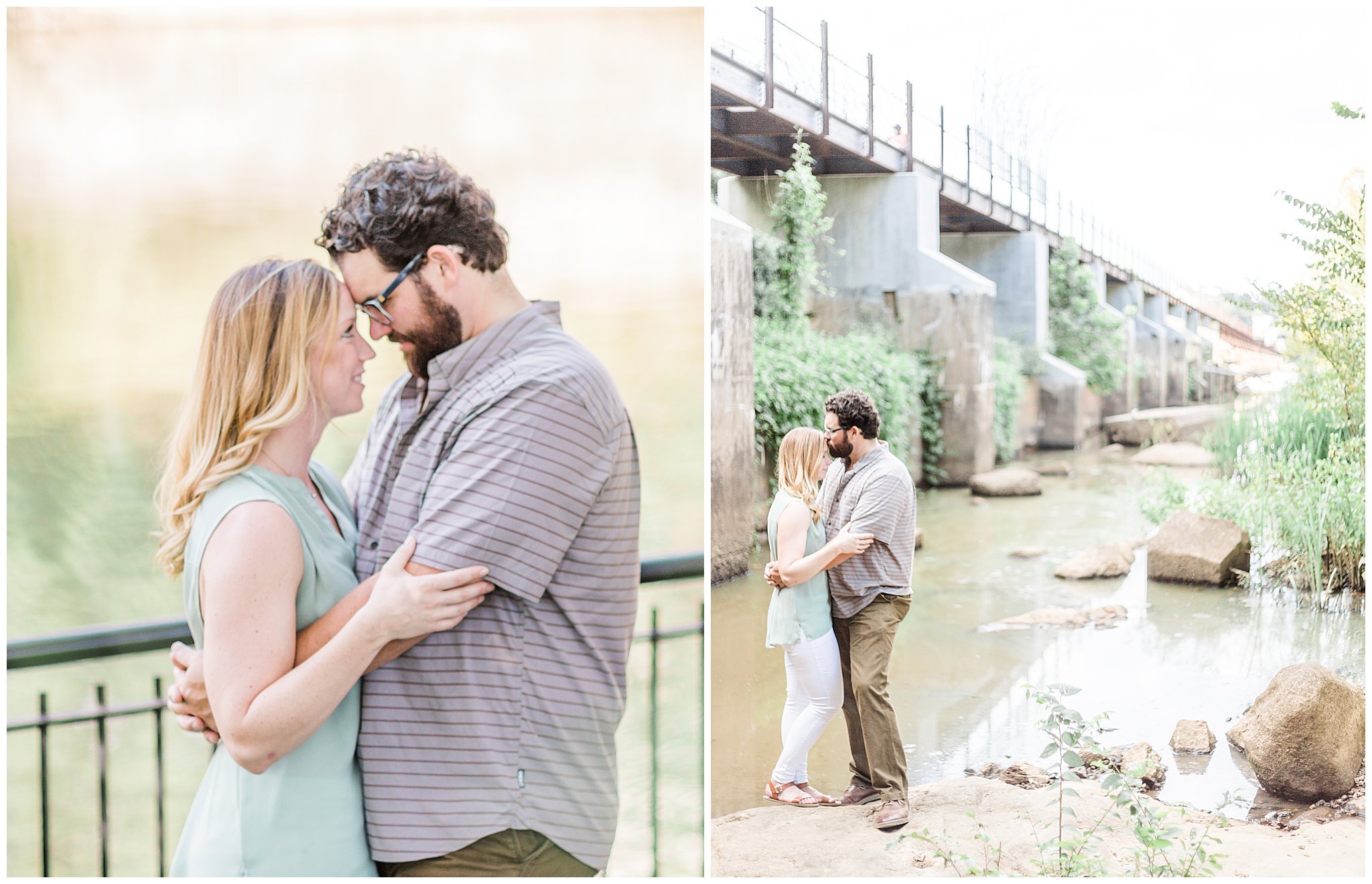 Beth and Ellison are such a fun couple! When Ellison pulled out a bag of props, he made my day. We walked across the T. Tyler Potterfield Memorial bridge to Manchester during their Brown’s Island engagement session in Richmond.