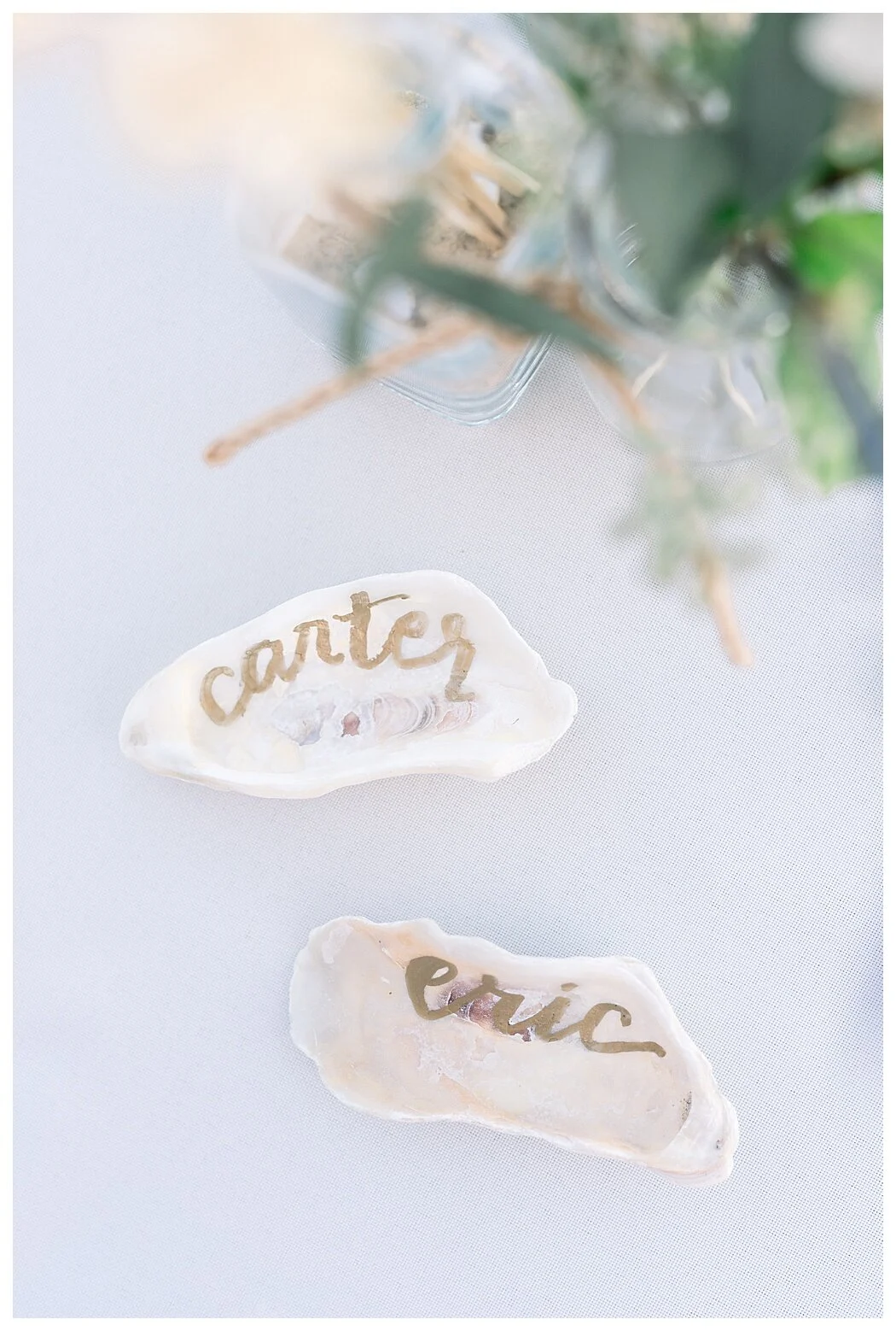 Carter’s earrings were handmade with Richmond designer, Emily Warden Designs. Not only were they lovely and the perfect choice for a beach wedding, but the designer is nearly always Eric’s choice for special occasion gifts for Carter. Carter gifted her bridesmaids each a pair of opal earrings from the designer, while Eric gave the groomsmen monogrammed sunglasses and koozies.